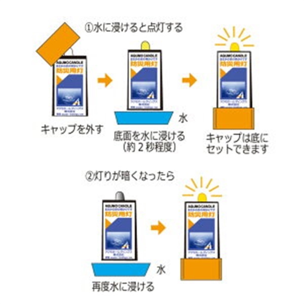 直進タイプ 防災用は、直線的に遠くまで照らします。 ・水に浸けるだけで168時間点灯 ・未開封の状態で長期保存(10年)可能 ・1個21gと軽量でかさばりにくい ※クーポン割引対象外