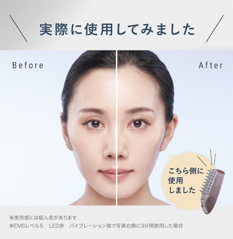 リフトケア※1 体感度※2 91% 使用部分のスッキリ感実感度※2 91% 継続意向度※2 91% 友人・家族へのおすすめ度※2 81% ※1 引き上げるように動かすこと ※2 20代~60代の男女(11名)のモニターによるアンケート結果(アンファー調べ) スカルプD ボーテの電気ブラシは エイジングケアクリニック 医師監修 高周波で痛みを感じにくい電気ブラシ 全身に使用可能! こんなお悩みありませんか? POINT 01 強張った筋肉もリフレッシュ EMS POINT 02 リフトケアサポートができる ラジオ波 POINT 03 2段階で強さが調整できる バイブレーション POINT 04 肌悩みに合わせて選べる 2色のLED POINT 05 安心安全設計 オートオフ機能 POINT 06 濡れた髪・肌にも使用可能 IPX5(生活防水)の防水仕様 実際に使用したお客様からのお声 How To Use レビュー評価 4.43 ※楽天市場における評価2024年3月8日集計